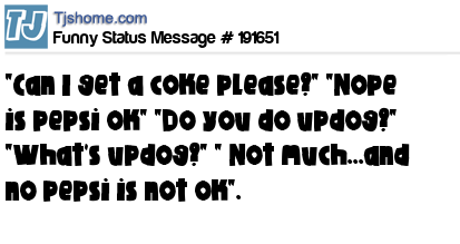 X is "Can I get a coke please?" "Nope is pepsi ok" "Do you do updog?" "What's updog?" " Not much...and no pepsi is not ok".