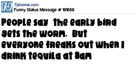 - # 15907 says "The early bird gets the worm, but the night owl gets the tequila!!"