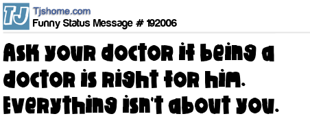 X says Ask your doctor if being a doctor is right for him. Everything isn't about you.