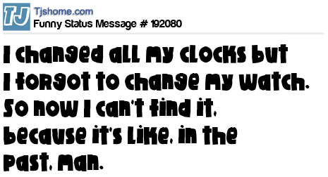 X says I changed all my clocks but I forgot to change my watch. So now I can't find it, because it's like, in the past, man.