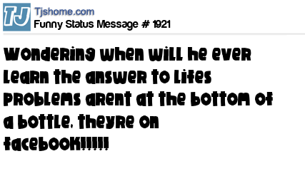 X is wondering when will he ever learn the answer to lifes problems arent at the bottom of a bottle, theyre on facebook!!!!!