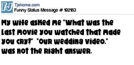 X says My wife asked me "What was the last movie you watched that made you cry?" "Our wedding video." was not the right answer.