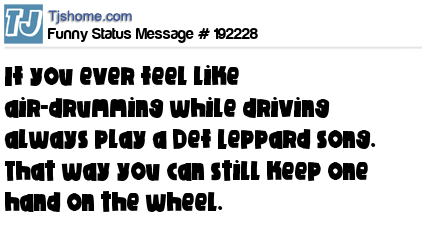 X says If you ever feel like air-drumming while driving always play a Def Leppard song. That way you can still keep one hand on the wheel.