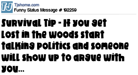 - # 209070 If you're lost in the woods, start talking loudly about politics. Someone will come to argue with you.