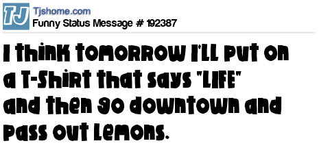 X says I think tomorrow I'll put on a T-Shirt that says "LIFE" and then go downtown and pass out lemons.