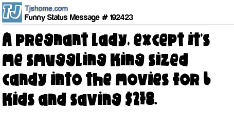X says A pregnant lady, except it's me smuggling king sized candy into the movies for 6 kids and saving $278.