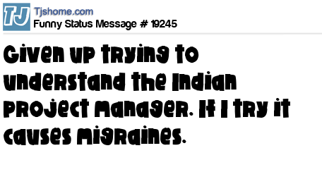 X has given up trying to understand the Indian project manager. If I try it causes migraines.
