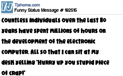 X says Countless individuals over the last 80 years have spent millions of hours on the development of the electronic computer. All so that I can sit at my desk yelling "Hurry up you stupid piece of crap!"
