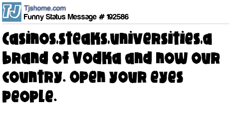 X says Casinos,steaks,universities,a brand of Vodka and now our country. Open your eyes people.