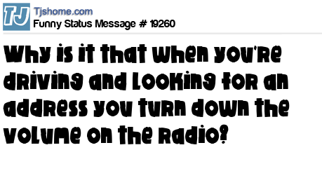 - # 21741 when you're driving you ever notice when you're driving and looking for an address, you turn down the volume on the radio.......Why?