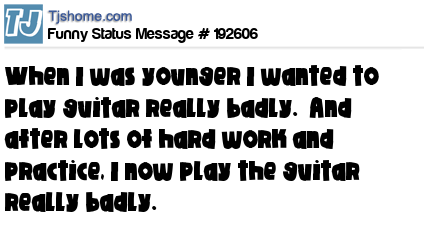 X says When I was younger I wanted to play guitar really badly. And after lots of hard work and practice, I now play the guitar really badly.