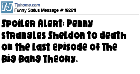 X says Spoiler Alert: Penny strangles Sheldon to death on the last episode of The Big Bang Theory.