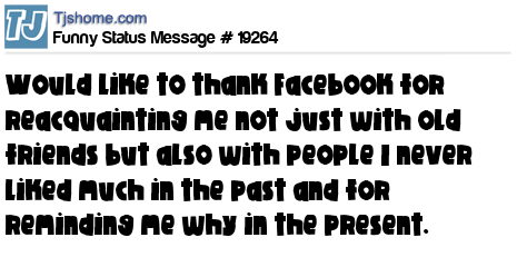 X would like to thank Facebook for reacquainting me not just with old friends but also with people I never liked much in the past and for reminding me why in the present.