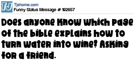 X says Does anyone know which page of the bible explains how to turn water into wine? Asking for a friend.