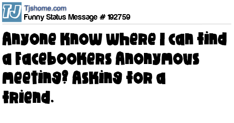 X is Anyone know where I can find a Facebookers Anonymous meeting? Asking for a friend.