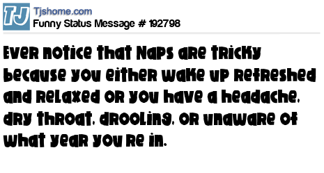 - # 205957 Naps are tricky because you either wake up refreshed and relaxed or you have a headache, dry throat, and are unaware of what year you’re in.