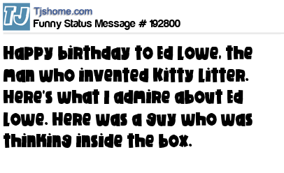 X says Happy birthday to Ed Lowe, the man who invented Kitty Litter. Here's what I admire about Ed Lowe. Here was a guy who was thinking inside the box.