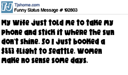 X says My Wife just told me to take my phone and stick it where the sun don't shine. So I just booked a $553 flight to Seattle. Women make no sense some days.