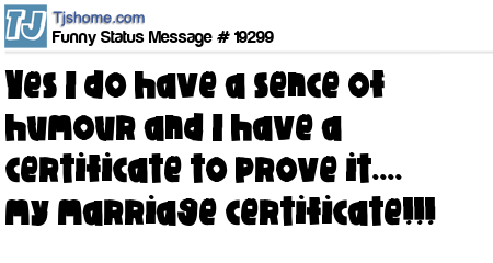 X says yes I do have a sence of humour and I have a certificate to prove it.... my marriage certificate!!!