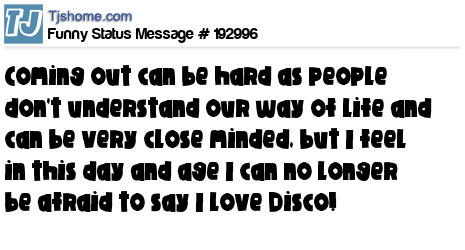 X is Coming out can be hard as people don't understand our way of life and can be very close minded, but I feel in this day and age I can no longer be afraid to say I love Disco!