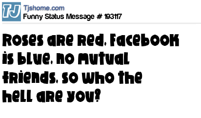 - # 189776 Roses are red, facebook is blue no mutual friends, who the hell are you?