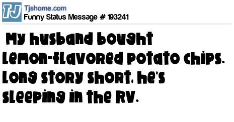 X says My husband bought lemon-flavored potato chips. Long story short, he's sleeping in the RV.