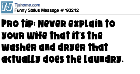 X says Pro tip: Never explain to your wife that it's the washer and dryer that actually does the laundry.