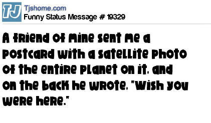 X says A friend of mine sent me a postcard with a satellite photo of the entire planet on it, and on the back he wrote, "Wish you were here."