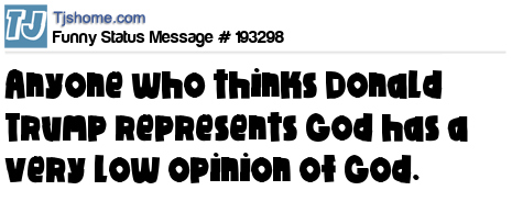 X is Anyone who thinks Donald Trump represents God has a very low opinion of God.