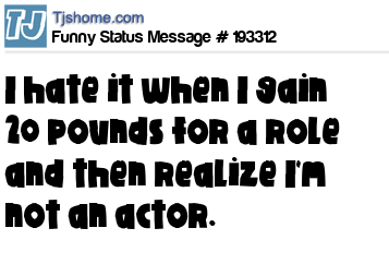 - # 178936 I hate when I pack on an extra twenty pounds for an upcoming movie roll and then I remember I'm not an actor.