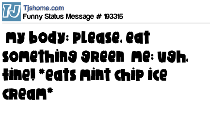 X says my body: please, eat something green me: ugh, fine! *eats mint chip ice cream*