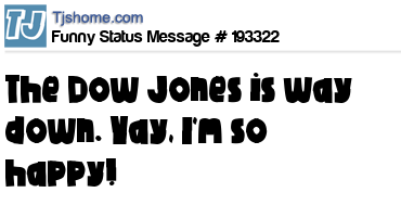 X is The Dow Jones is way down. Yay, I'm so happy!
