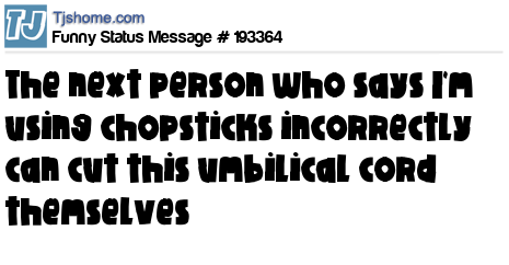X says The next person who says I'm using chopsticks incorrectly can cut this umbilical cord themselves