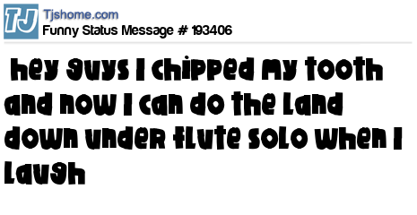 X says hey guys I chipped my tooth and now I can do the land down under flute solo when I laugh