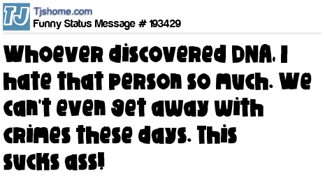 X is Whoever discovered DNA, I hate that person so much. We can't even get away with crimes these days. This sucks ass!