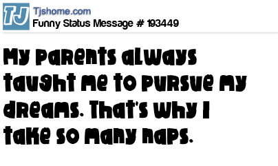 X says My parents always taught me to pursue my dreams. That's why I take so many naps.