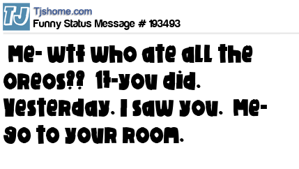 X says Me- wtf who ate all the Oreos?? 17-you did. Yesterday. I saw you. Me- go to your room.
