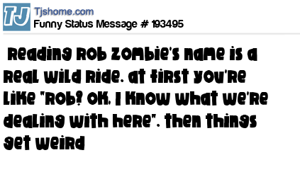 X says reading rob zombie's name is a real wild ride. at first you're like "rob? ok, I know what we're dealing with here". then things get weird