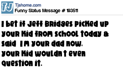 X says I bet if Jeff Bridges picked up your kid from school today & said “I’m your dad now,” your kid wouldn’t even question it.