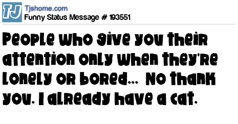 X says People who give you their attention only when they're lonely or bored... No thank you. I already have a cat.
