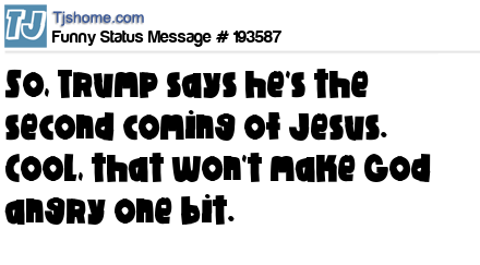 X is So, Trump says he's the second coming of Jesus. Cool, that won't make God angry one bit.