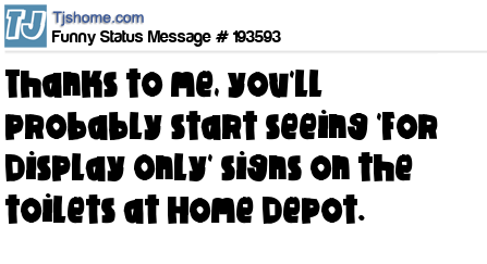 - # 140803 - Thanks to me, you'll probably start seeing 'For Display Only' signs on the toilets at Home Depot.