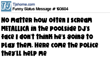 X says No matter how often I scream METALLICA in the poolside DJ's face I don't think he's going to play them. Here come the police they'll help me