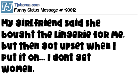 - # 199485 My wife said she bought the lingerie for me, but then got upset when I put it on... I just don't get women.