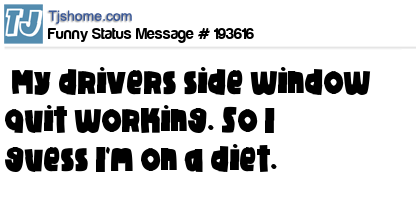 X says My drivers side window quit working. So I guess I'm on a diet.