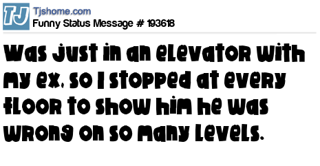 X says Was just in an elevator with my ex, so I stopped at every floor to show him he was wrong on so many levels.