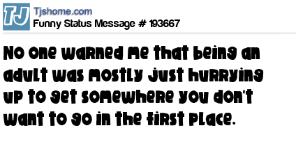 X says No one warned me that being an adult was mostly just hurrying up to get somewhere you don't want to go in the first place.