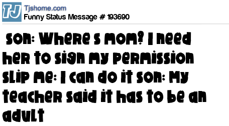 X says son: Where’s mom? I need her to sign my permission slip me: I can do it son: My teacher said it has to be an adult