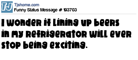 X says I wonder if lining up beers in my refrigerator will ever stop being exciting.
