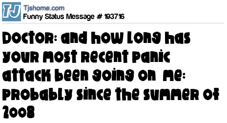 X says doctor: and how long has your most recent panic attack been going on me: probably since the summer of 2008